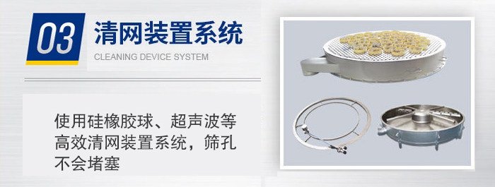 3、使用硅橡膠球、超聲波等高效清網(wǎng)裝置系統(tǒng),篩孔不會(huì)堵塞;