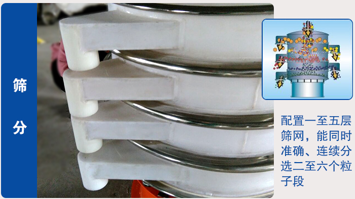 篩分就是把固體顆粒分成大小相等的不同粒子組。單臺系列篩分機可配置一至五層篩網(wǎng),能同時準確、連續(xù)分選二至六個粒子段;分級精度達95%以上。