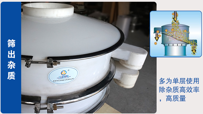 防腐蝕塑料振動篩能把各類漿液中的非溶性大顆粒物質(zhì)迅速清除。多為單層使用。系列特殊設(shè)計的篩分過濾機每小時過濾量高達20立方。