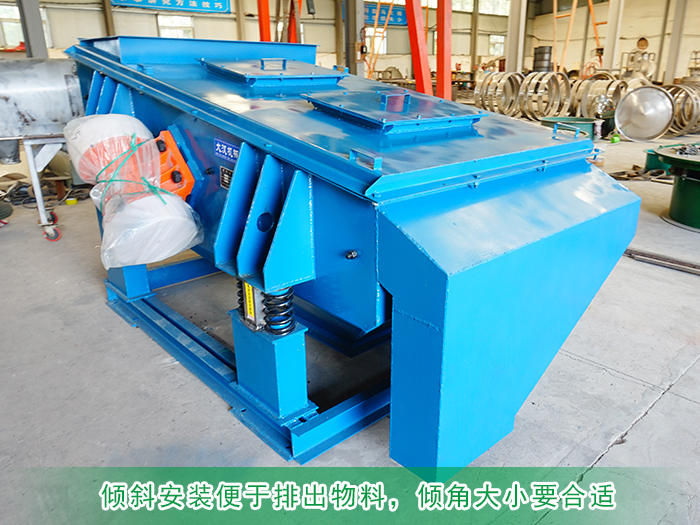 一般情況下,直線振動(dòng)篩是傾斜安裝的,以便于排出篩上物料。傾角大小要合適,傾角過小,物料在篩面上運(yùn)動(dòng)速度太慢,雖然篩分效率高,但直線篩的生產(chǎn)率減少;反之,傾角太大,物料排出太快,篩分效率降低。故篩面的傾角要適當(dāng)。