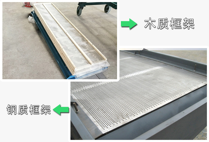 1、產(chǎn)能低時(shí)直線振動(dòng)篩的框架可以選擇木質(zhì)框架,產(chǎn)能高時(shí)就需要選擇鋼質(zhì)框架了。